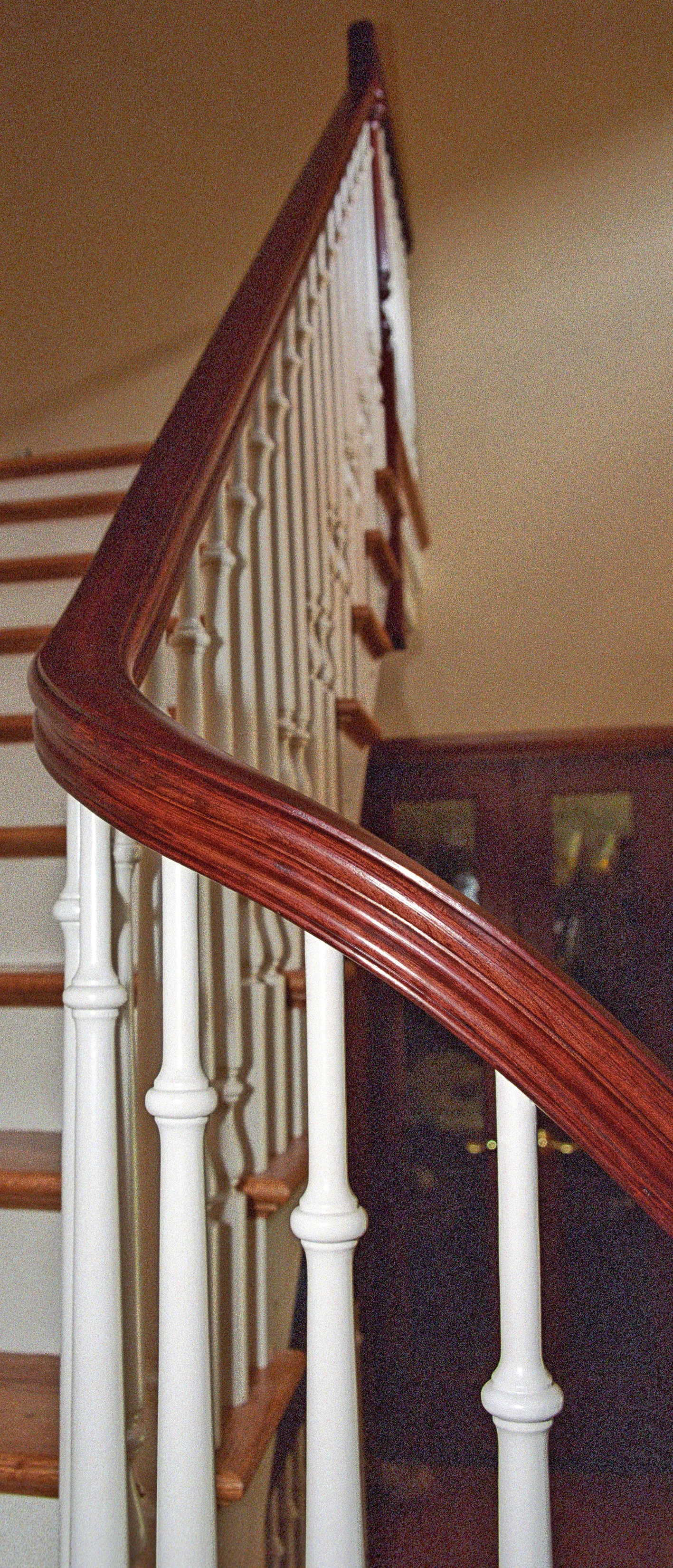 The handrail is one of the main focal points of any staircase. Designers, architects, and contractors have recently taken a renewed interest on this beautiful safety element. For the best look, Oak Pointe’s standard handrail construction is solid ply (fingerjoint free in most cases, longer handrails and certain wood species may require fingerjoints). Handrail is available as straight rail, bending rail, and wreathed (tangent). To accommodate tight turns and climbing situations, consider Oak Pointe’s wreathed components for a graceful solution to a difficult problem.